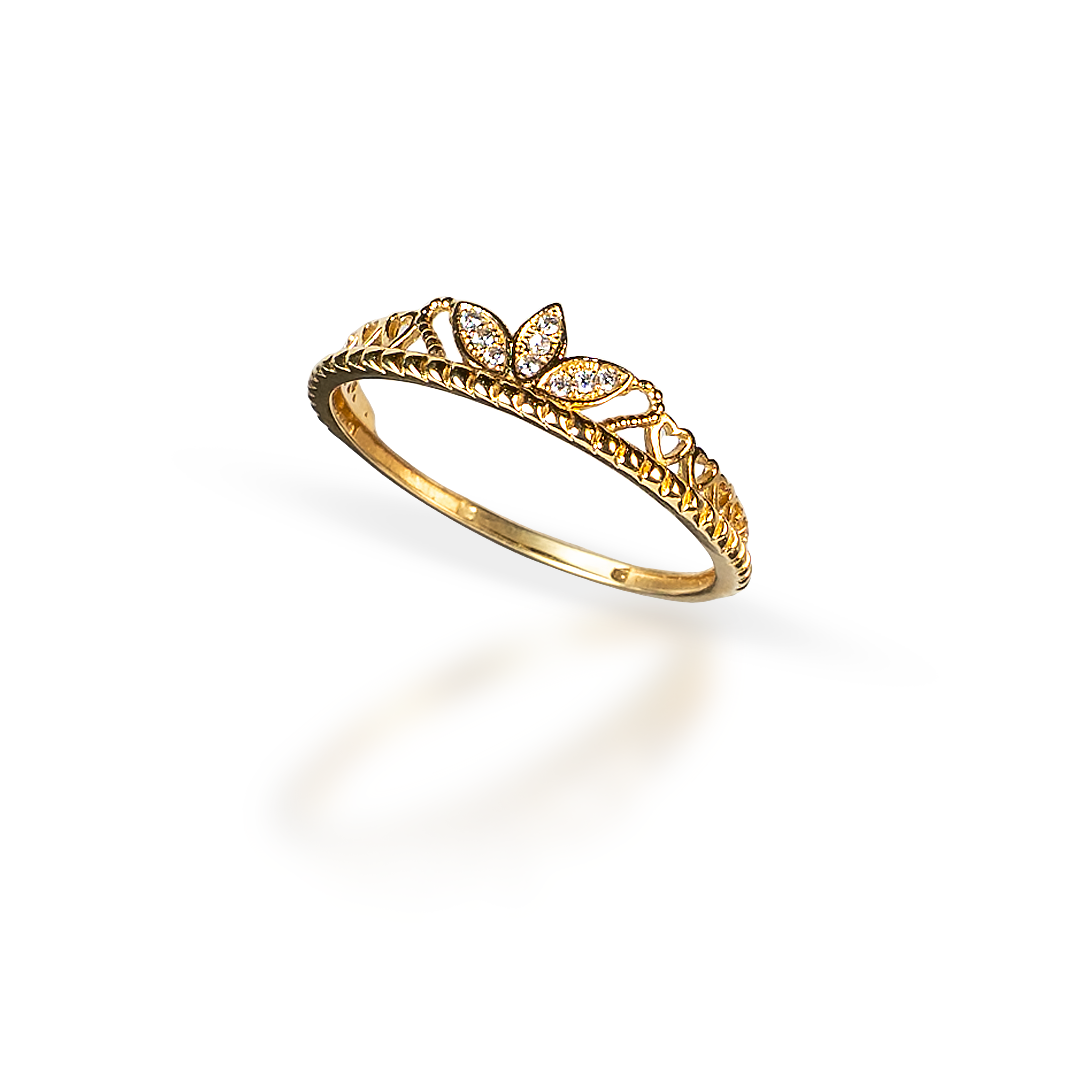 Anel Coroa com topázio incolor em ouro amarelo 18k, Largura aprox.=1,2mm Peso médio=1,7grs.