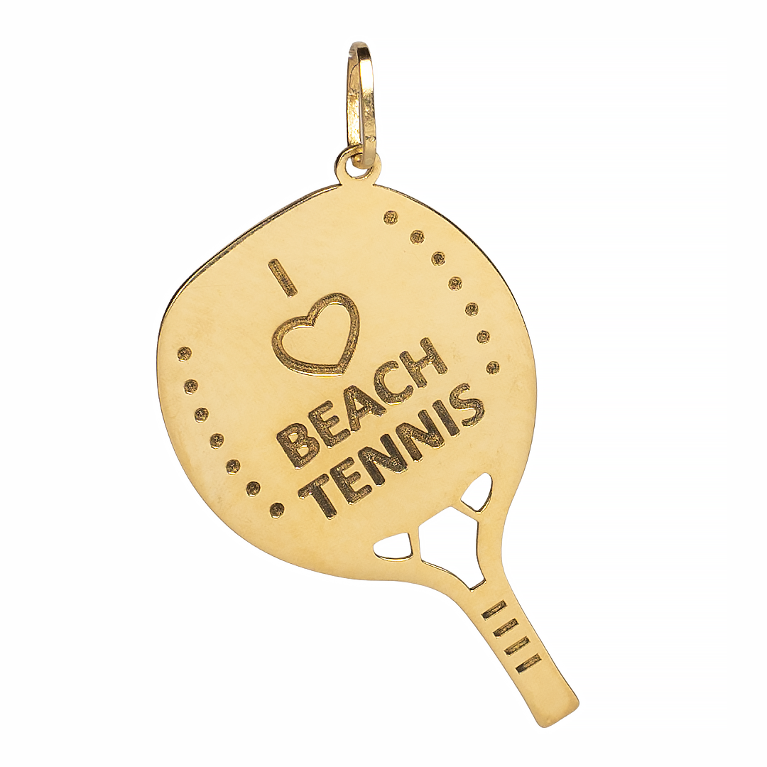Pingente em ouro amarelo 18k , I amo Beach Tennis 3,4cm Altura=1,35mm Largura=0,67mm Peso Médio=1,6grs.